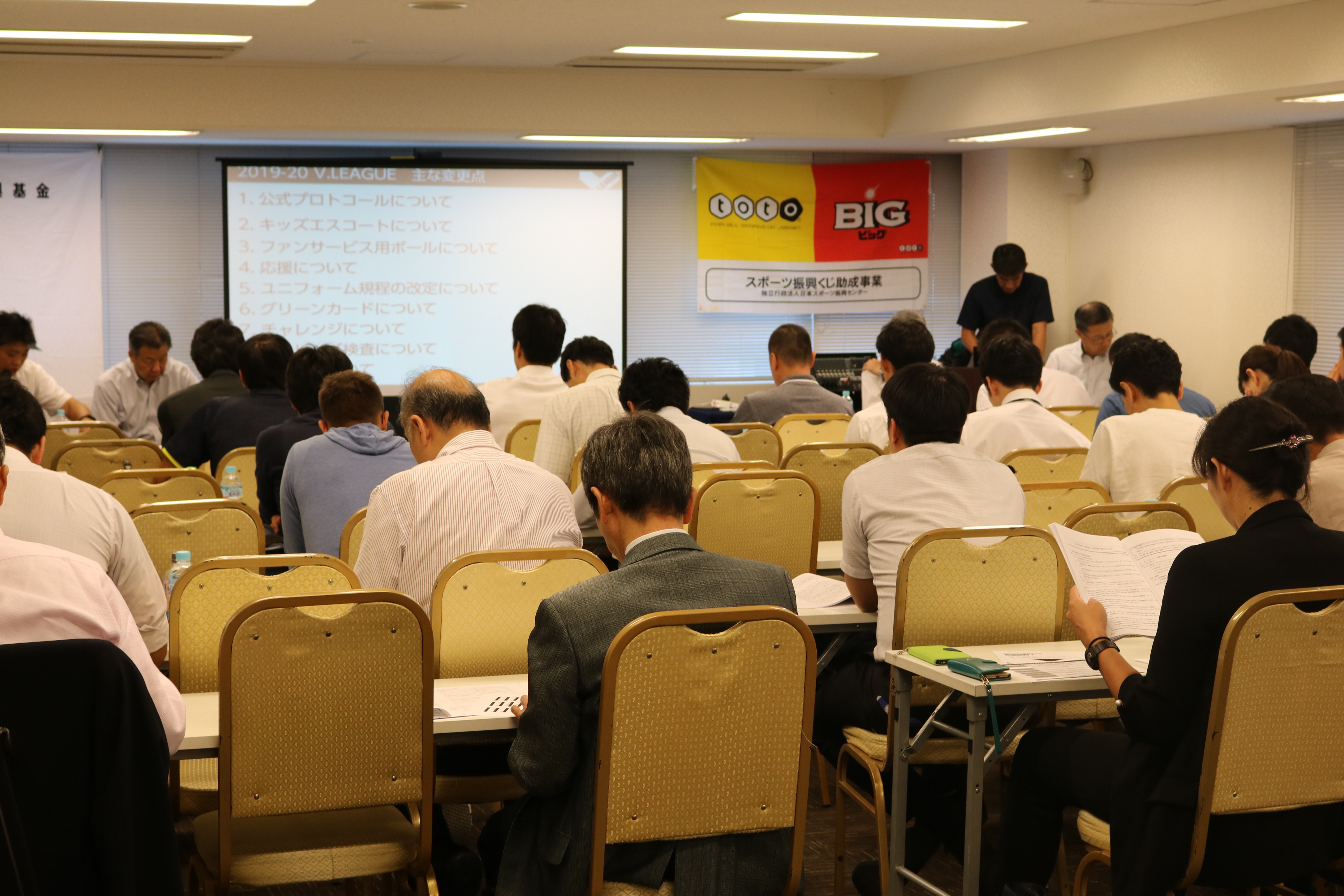 9月21日(土)、2019-20シーズンの開幕を前にJURY、Vレフェリー、チームの監督が一堂に会し適用ルールおよび変更点等の確認を行う"レフェリークリニック"を開催いたしました。