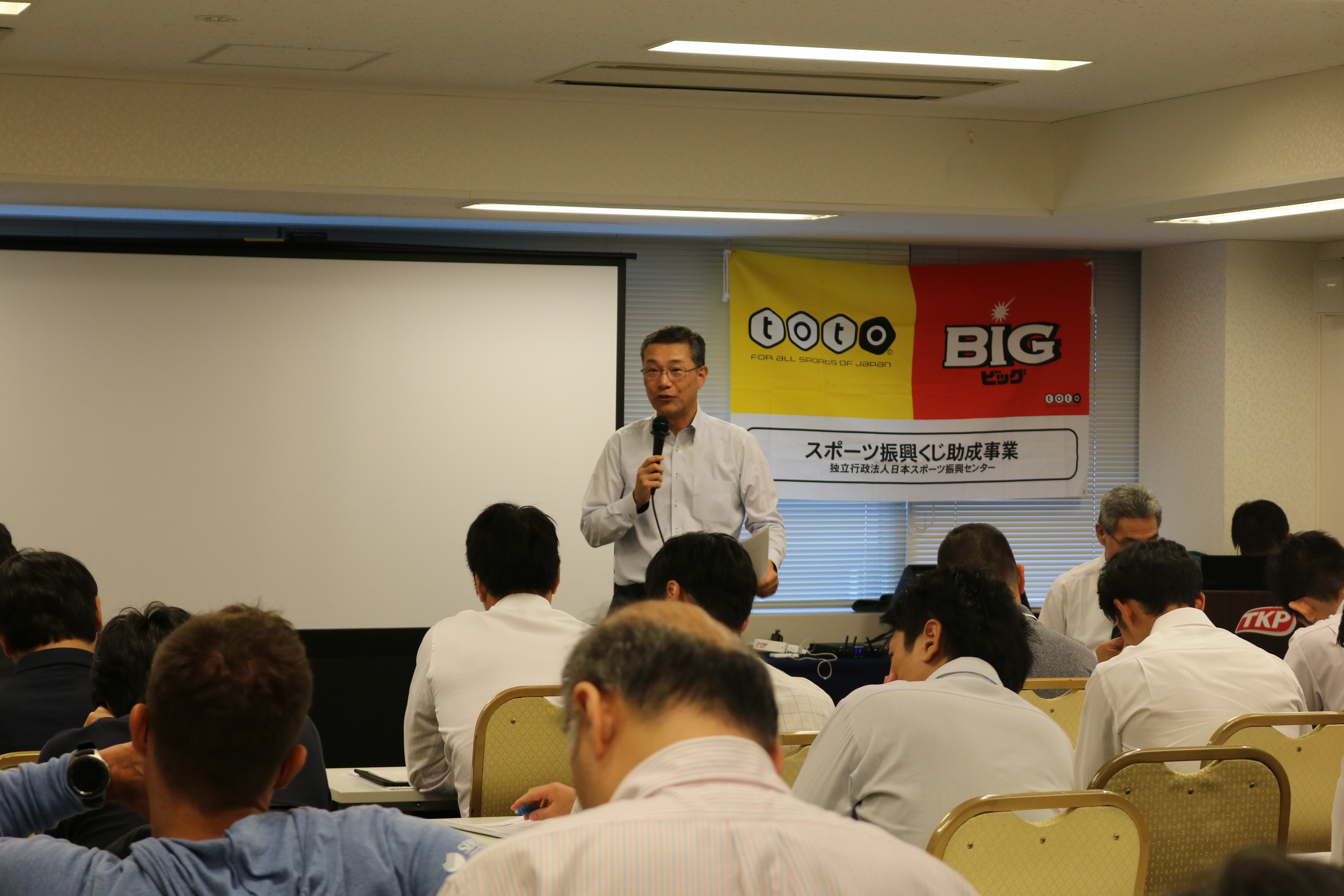 公益財団法人日本バレーボール協会 田野昭彦 審判規則委員会指導部長より、咋シーズンより変更となるポイントを中心に詳解されました。チャレンジシステム運用ルールについては、チームからレフェリーへの申告方法や申告後の流れについて説明がなされ、監督との質疑応答が行なわれました。