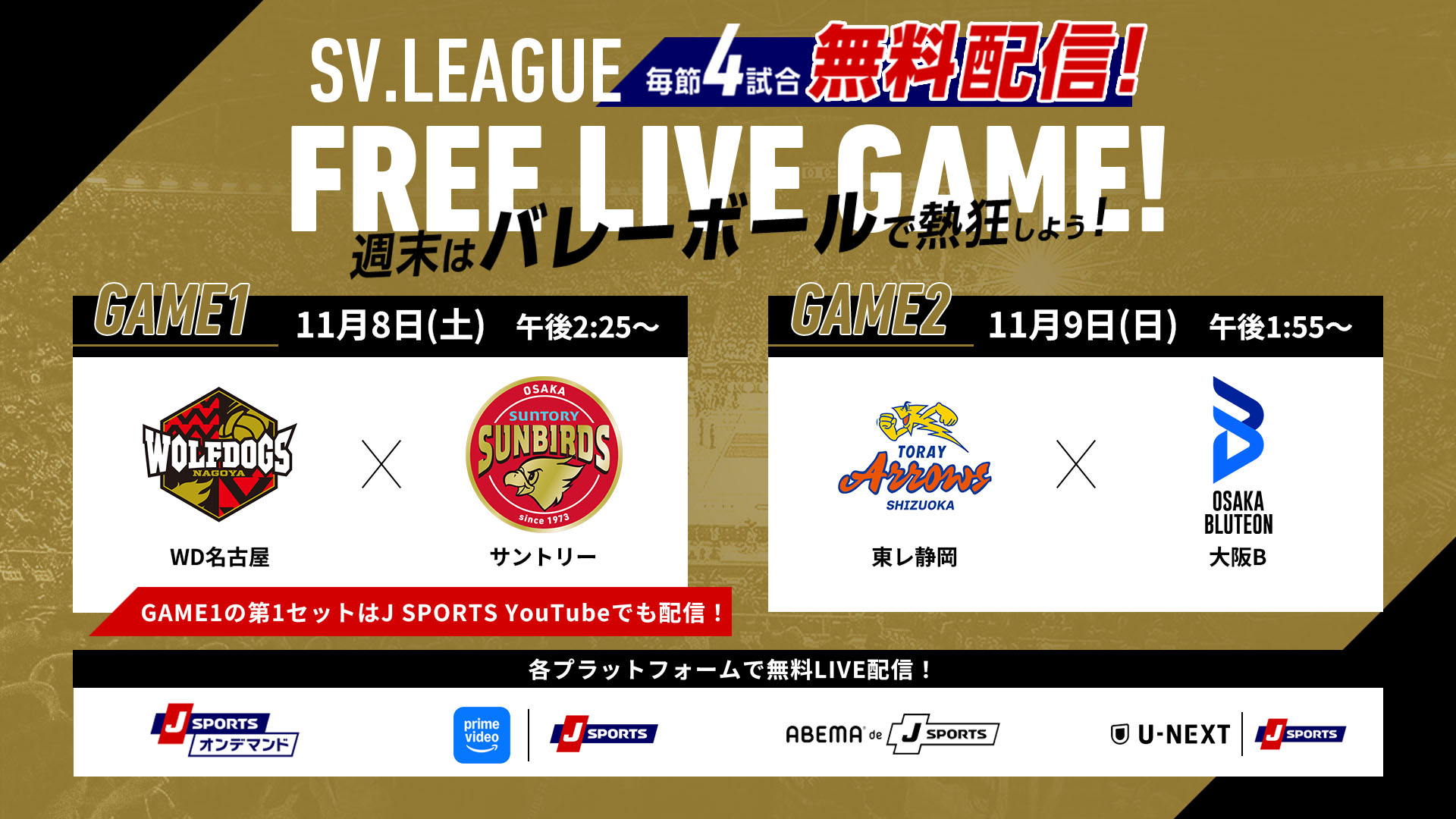 GAME1:J SPORTSオンデマンド、SVリーグFree Live GAME!