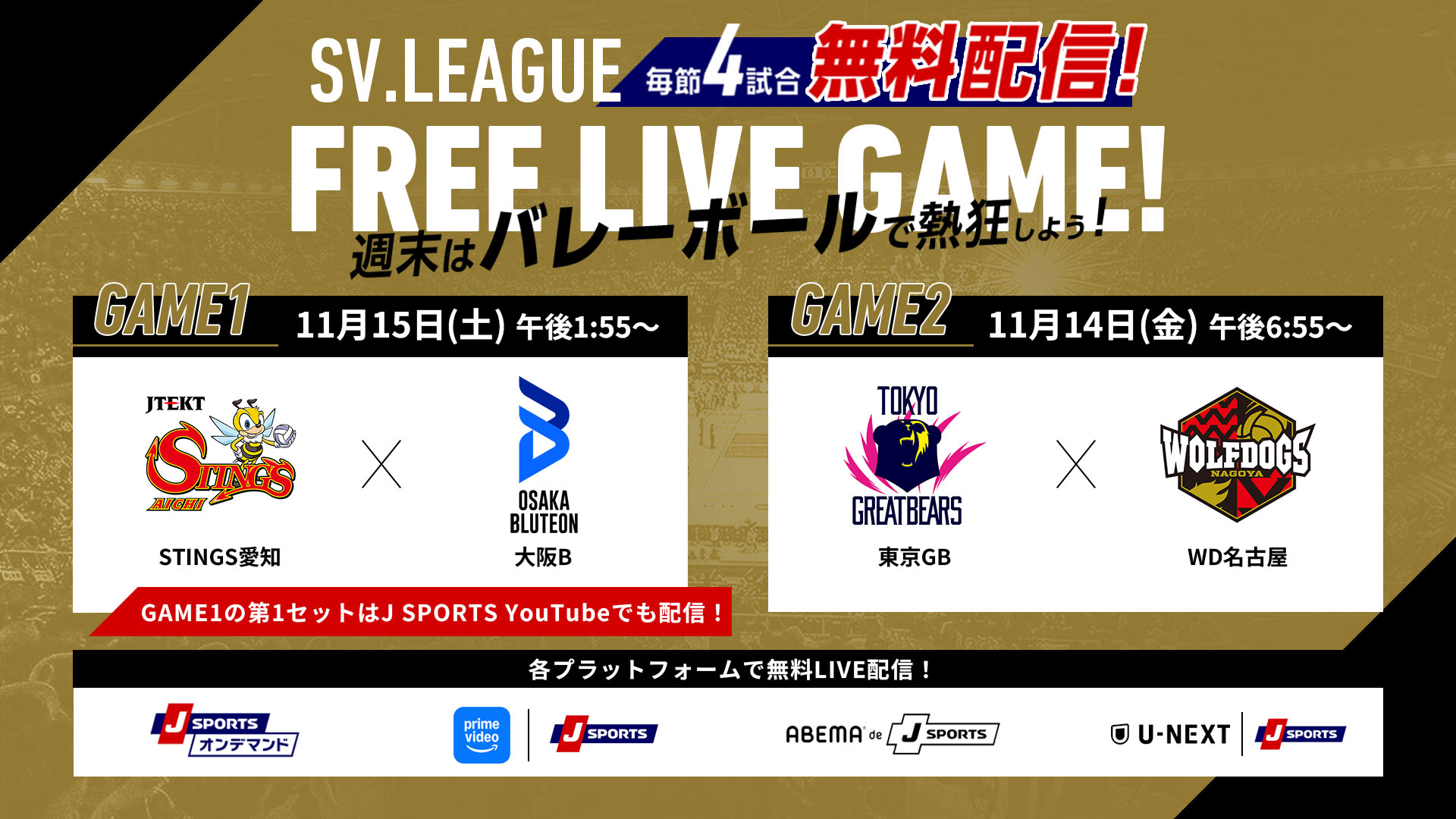 GAME2: J SPORTSオンデマンド、SVリーグFree Live GAME!