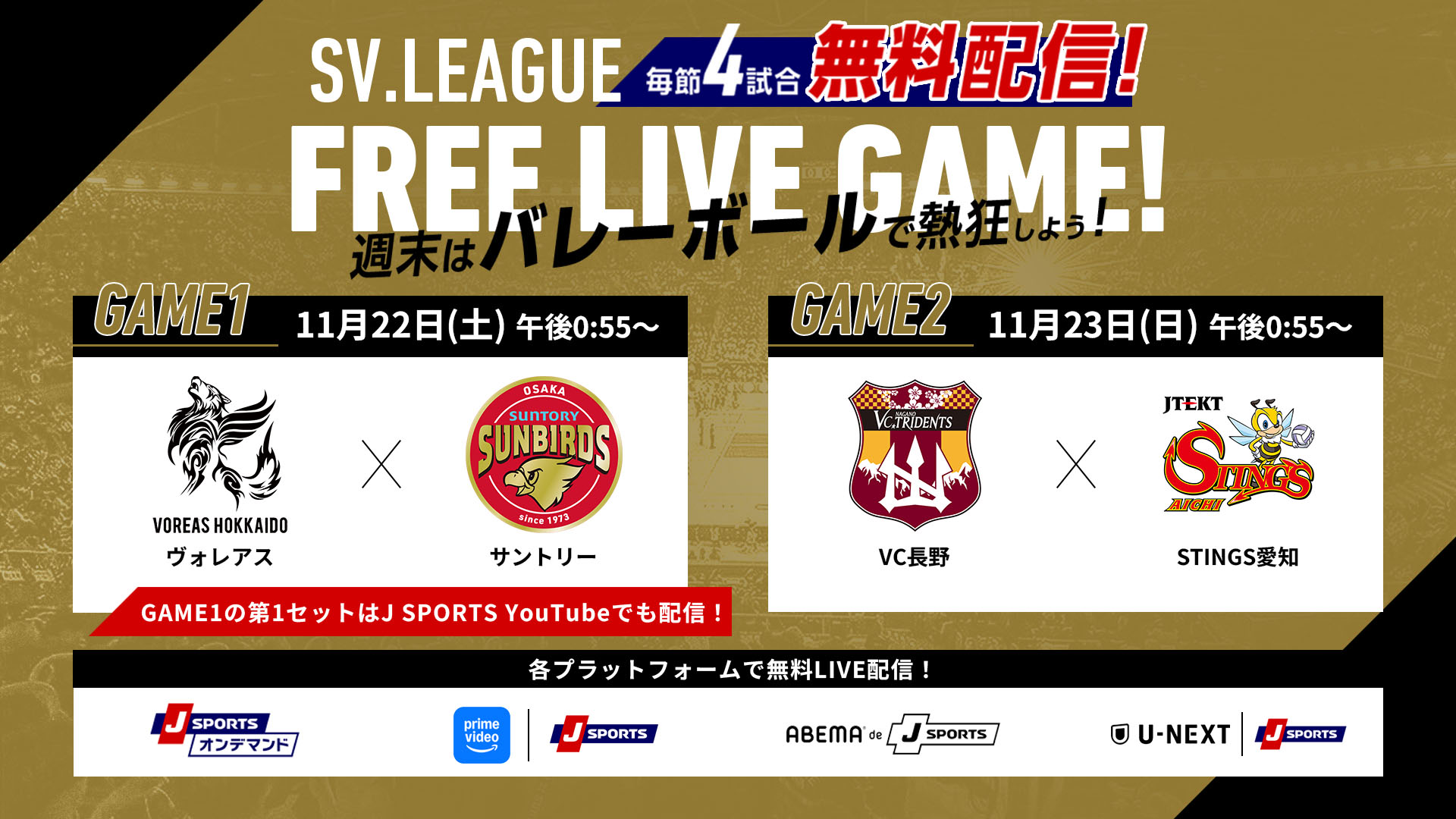 GAME1: J SPORTSオンデマンド、SVリーグFree Live GAME!