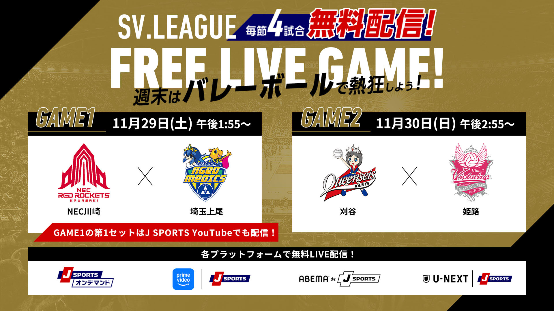 GAME2: J SPORTSオンデマンド、SVリーグFree Live GAME!