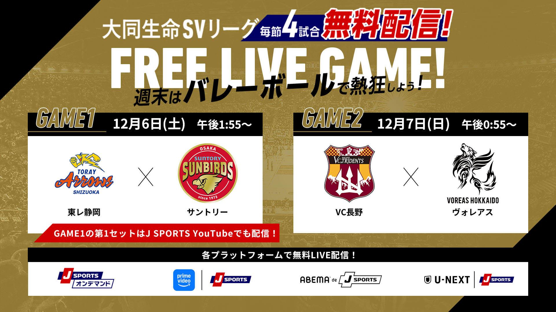 GAME1: J SPORTSオンデマンド、SVリーグFree Live GAME!