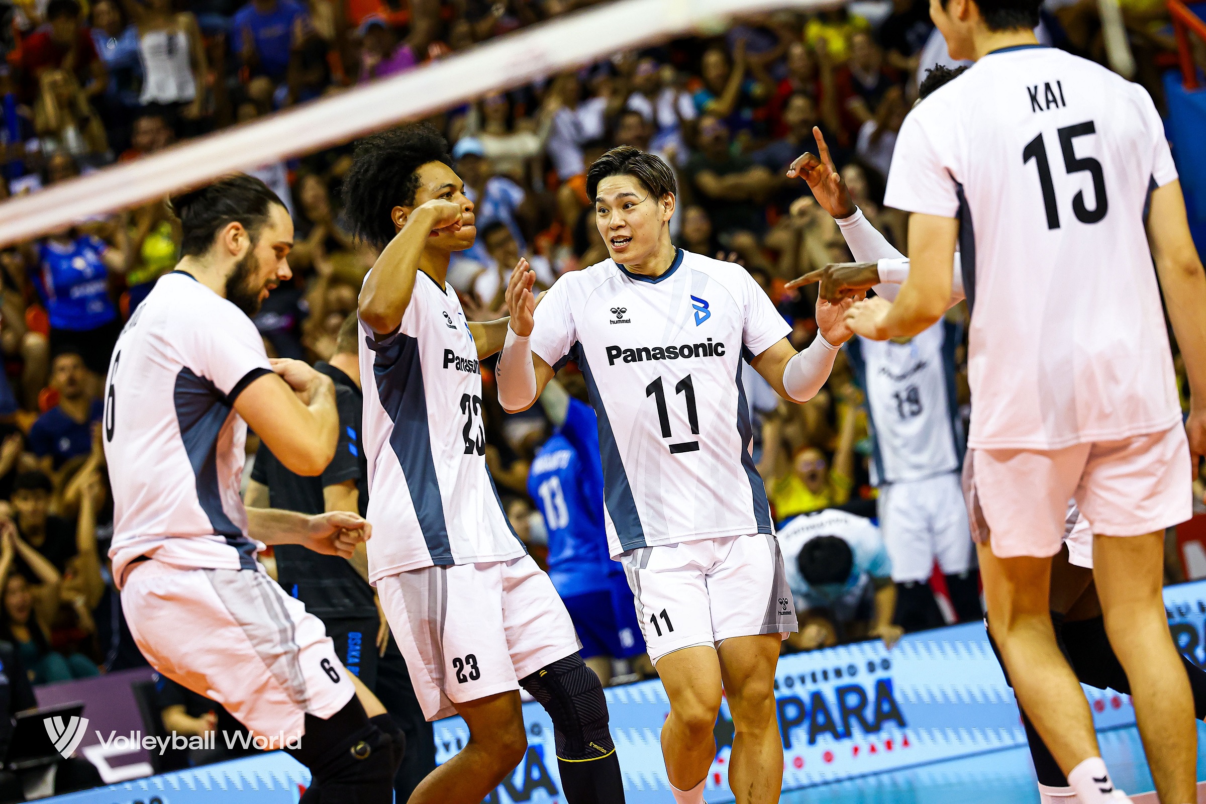 中盤も強力なサーブに対して、山本を中心に富田、ロペスと連携してしっかり返球して、我慢の時間が続くなか、好機を伺いながら試合を運んでいった。