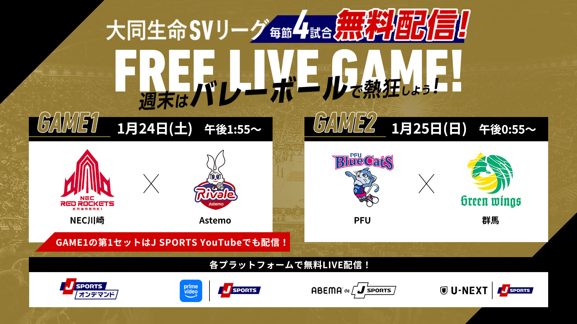 GAME2: J SPORTSオンデマンド、SVリーグFree Live GAME!