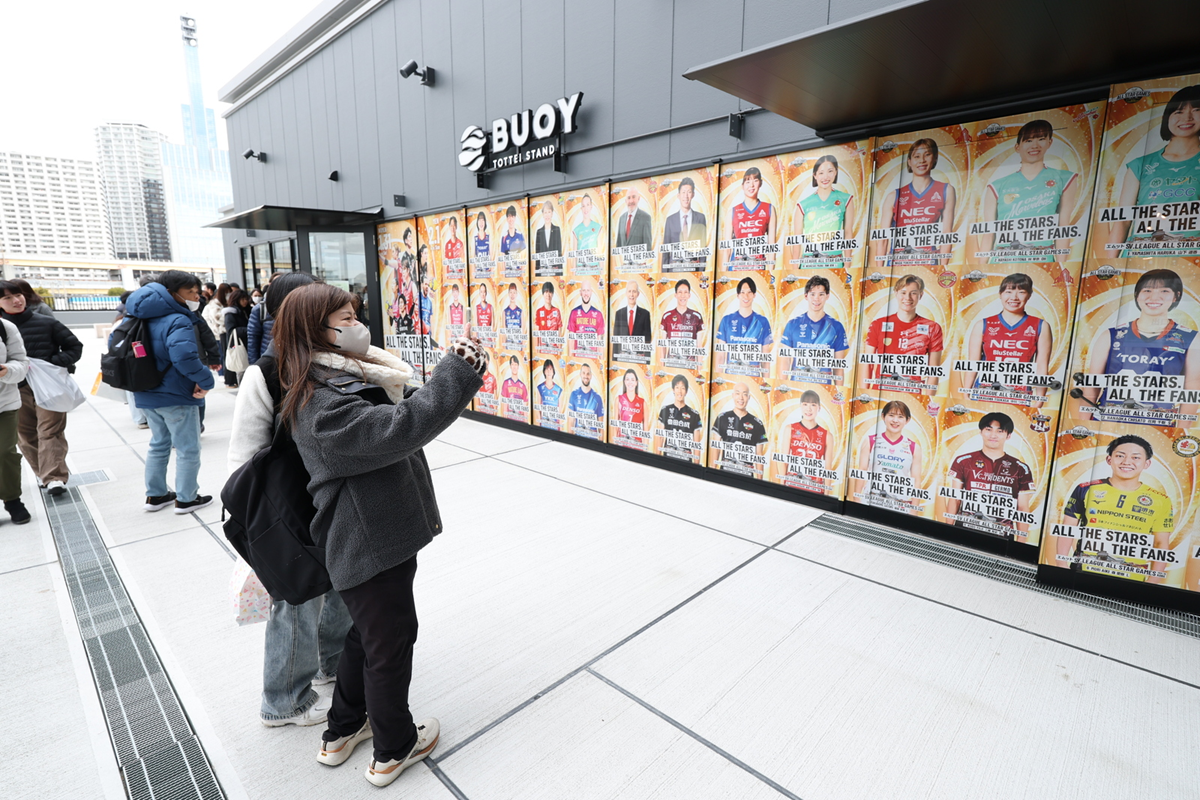 本大会の開催を記念し、TOTTEI内にSVリーグ初のコラボカフェが期間限定でオープンしました。大会仕様に特別ラッピングされた外装に加え、店内には全24チームの出場選手サイン入りユニフォームやフォトウォール、各チームのマスコットなどを展示。さらに、オリジナルコースターが付いたSVリーグカラーのゴールドとブラック、2種類のコラボドリンクも販売されました。フォトスポットとしても人気を集め、写真撮影を楽しむお客様の姿が多く見られました。